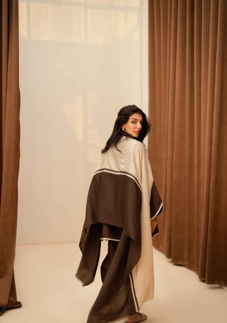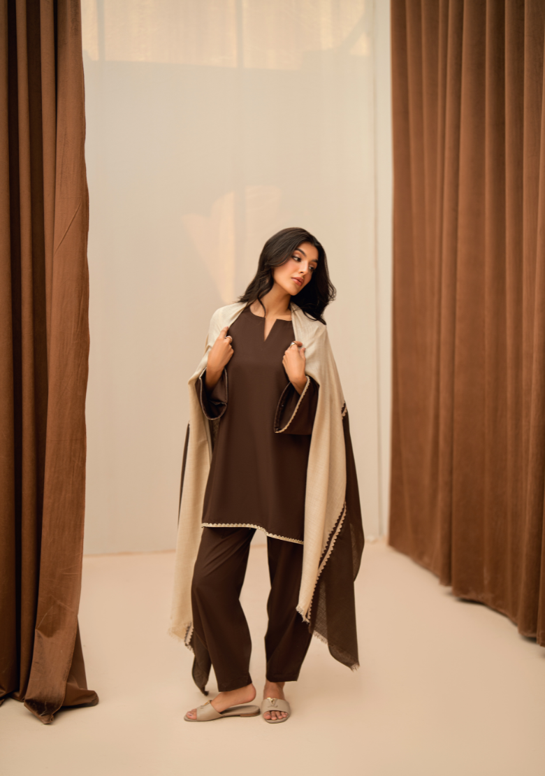 Beige & brown Colour Blocked Scarf/Shawl Includes embroidered detailing  Fabric- Most lightweight Pashmina