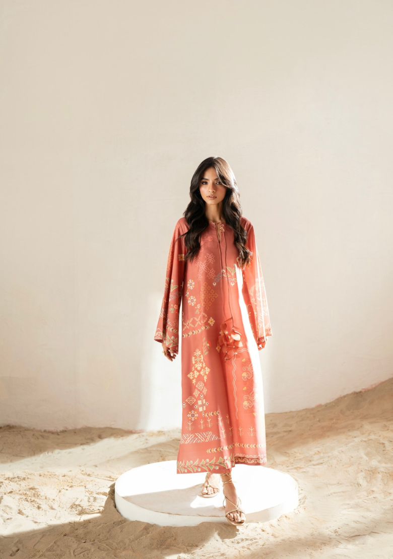 Printed set Includes a printed shirt and pants   Includes laser embroidered tassels  In-house premium blended viscose Crease Resistant...