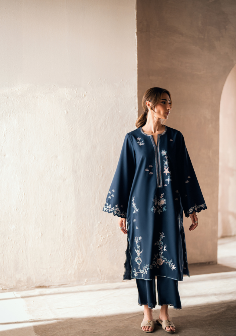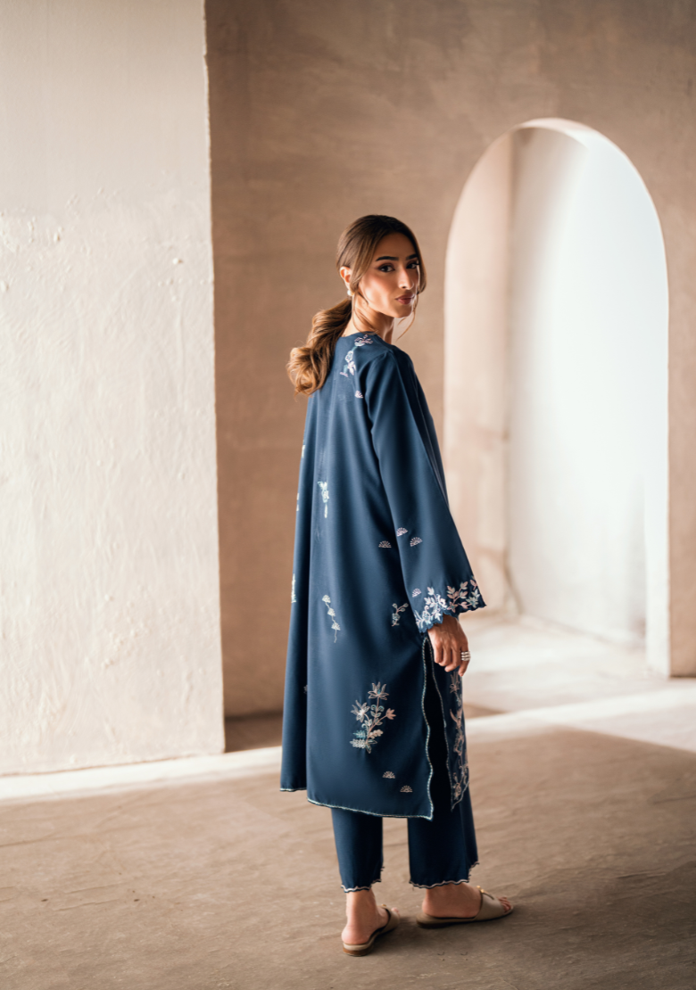 Blue matching set Includes an embroidered shirt and culottesĀ  In-house premium blended viscose Crease Resistant Suited for...